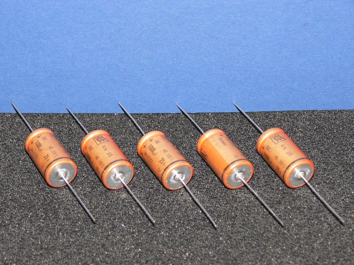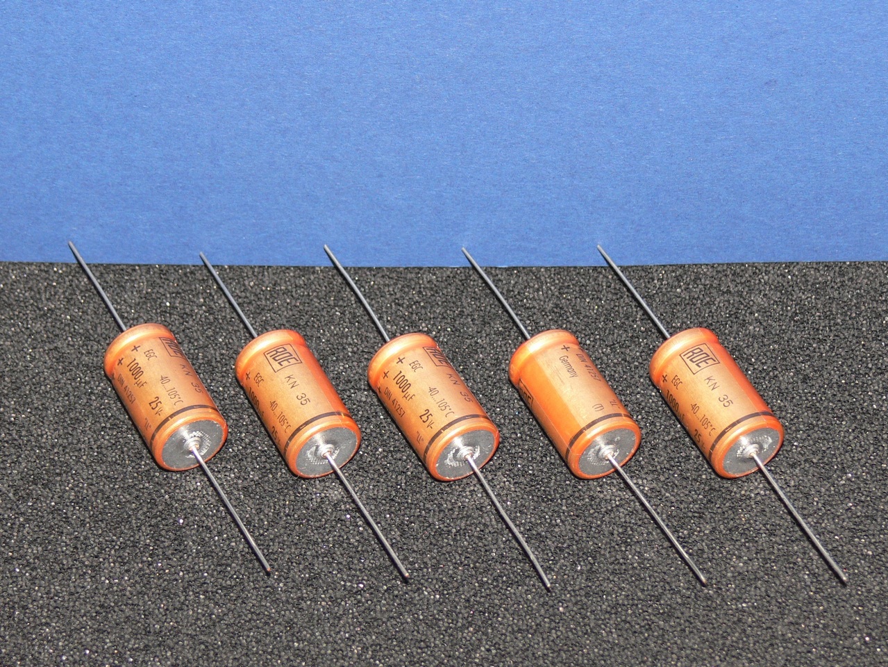 Roederstein Kondensator axial Elko 1000uF 25V 105° 16x30 mm Lot mit 5 Stk.