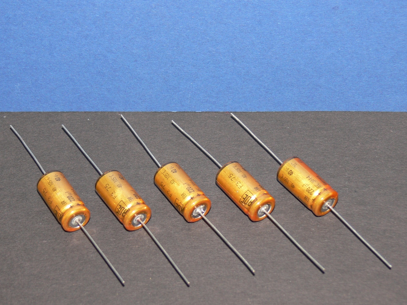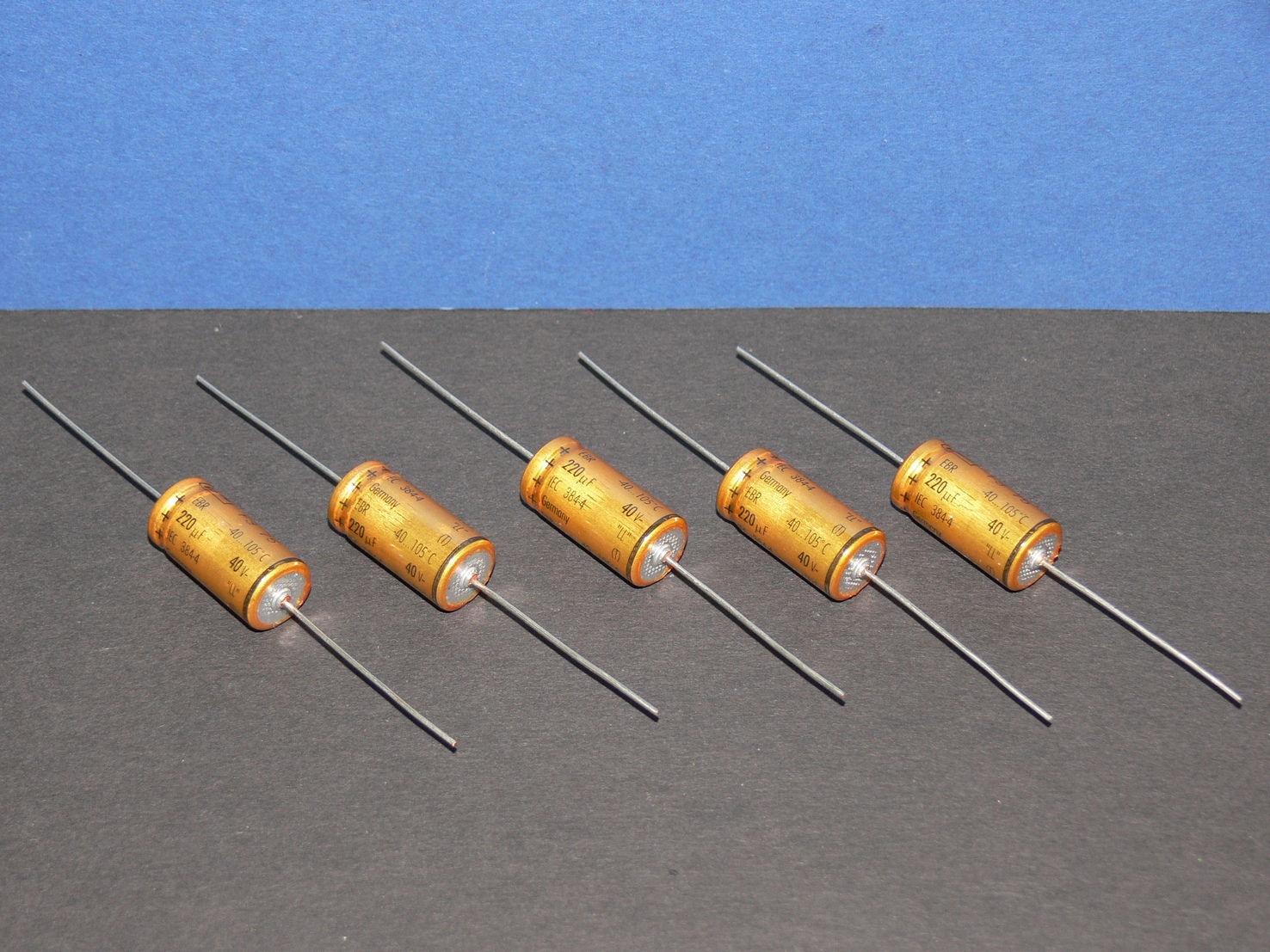 Roederstein Kondensator axial Elko 220uF 40V 105° 12x25 mm Lot mit 5 Stk.