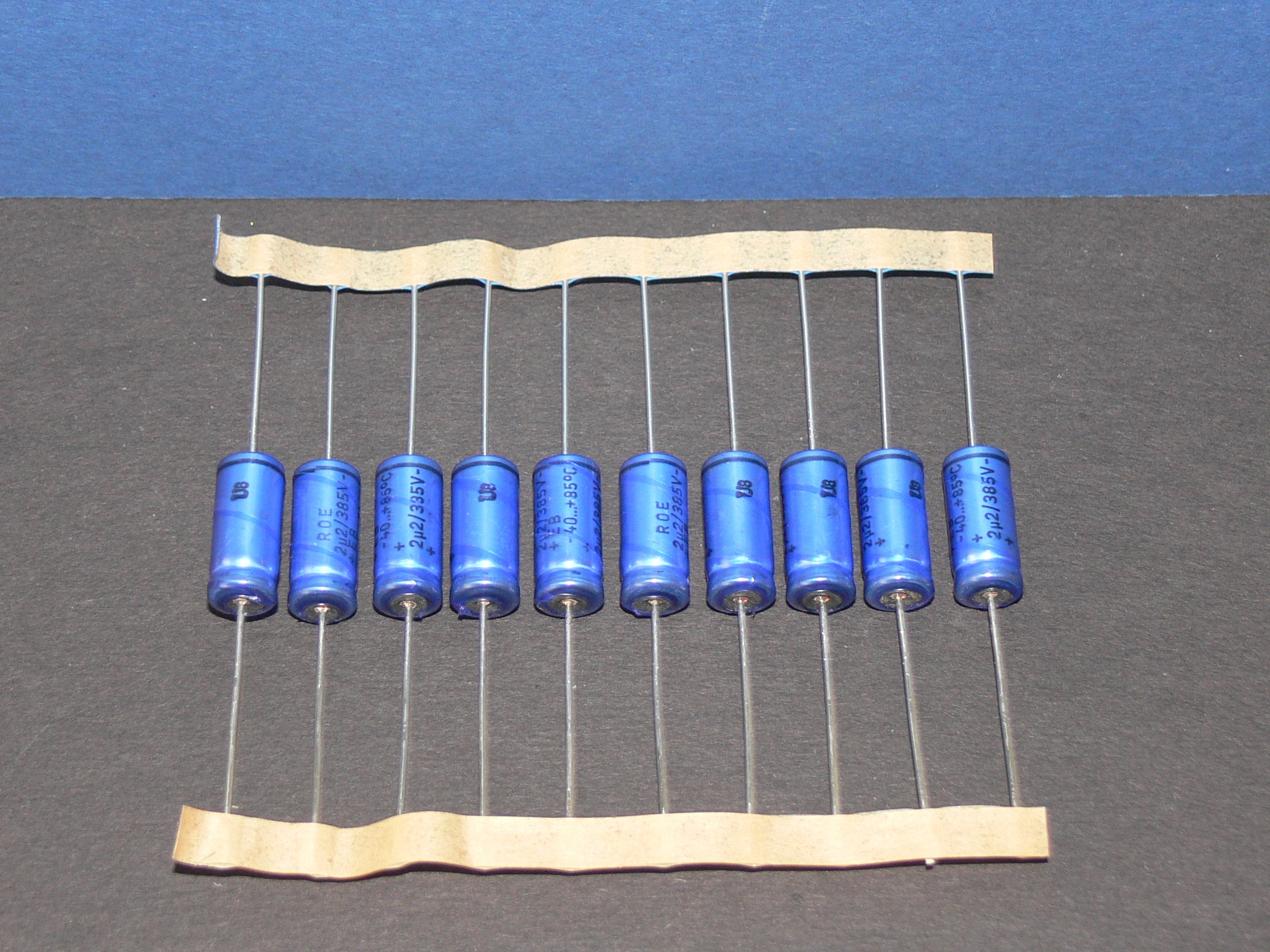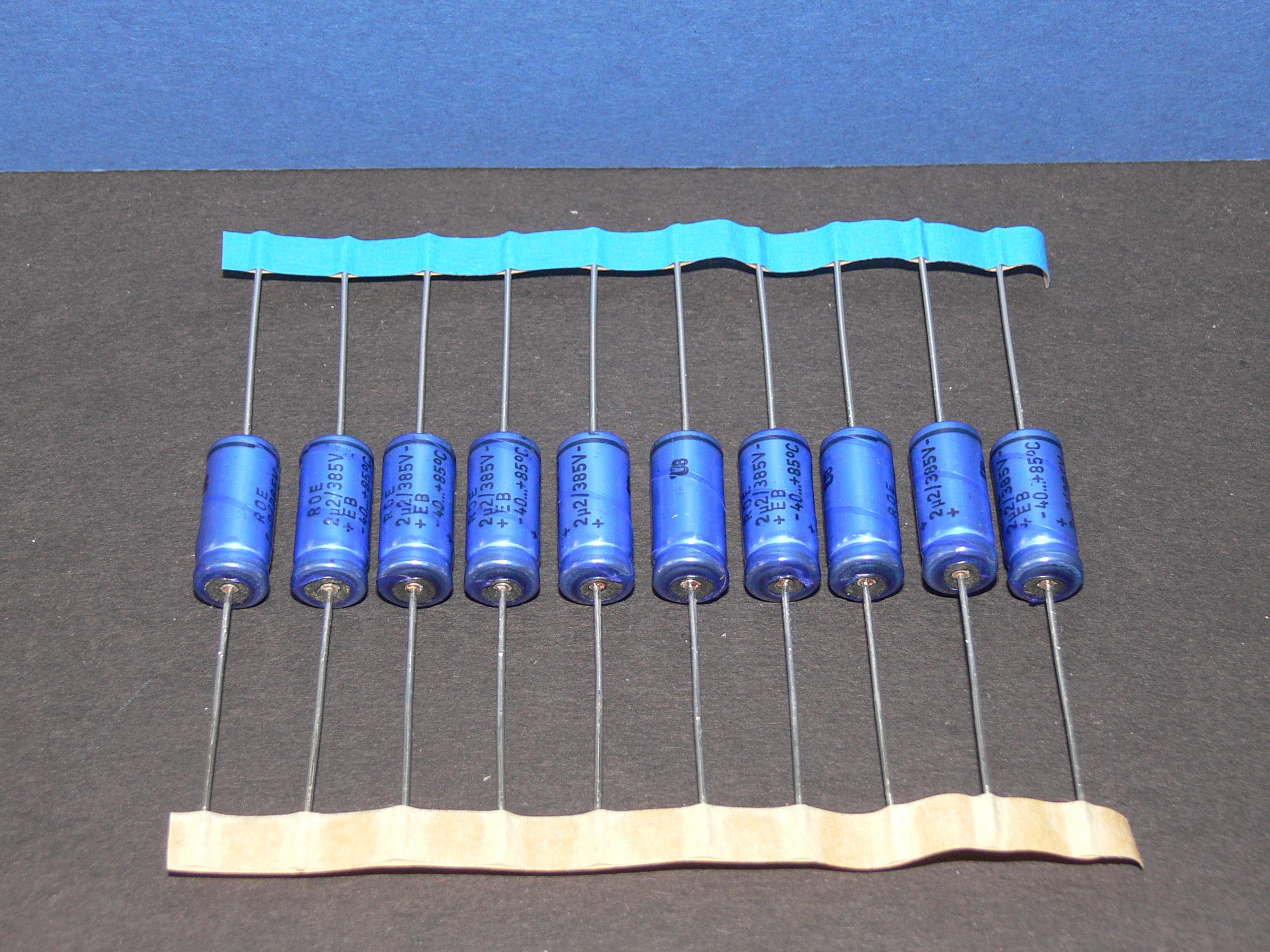ROE / Vishay Kondensator axial Elko 2,2uF 385V 8,5 x 18,5mm Lot mit 10 Stk blau