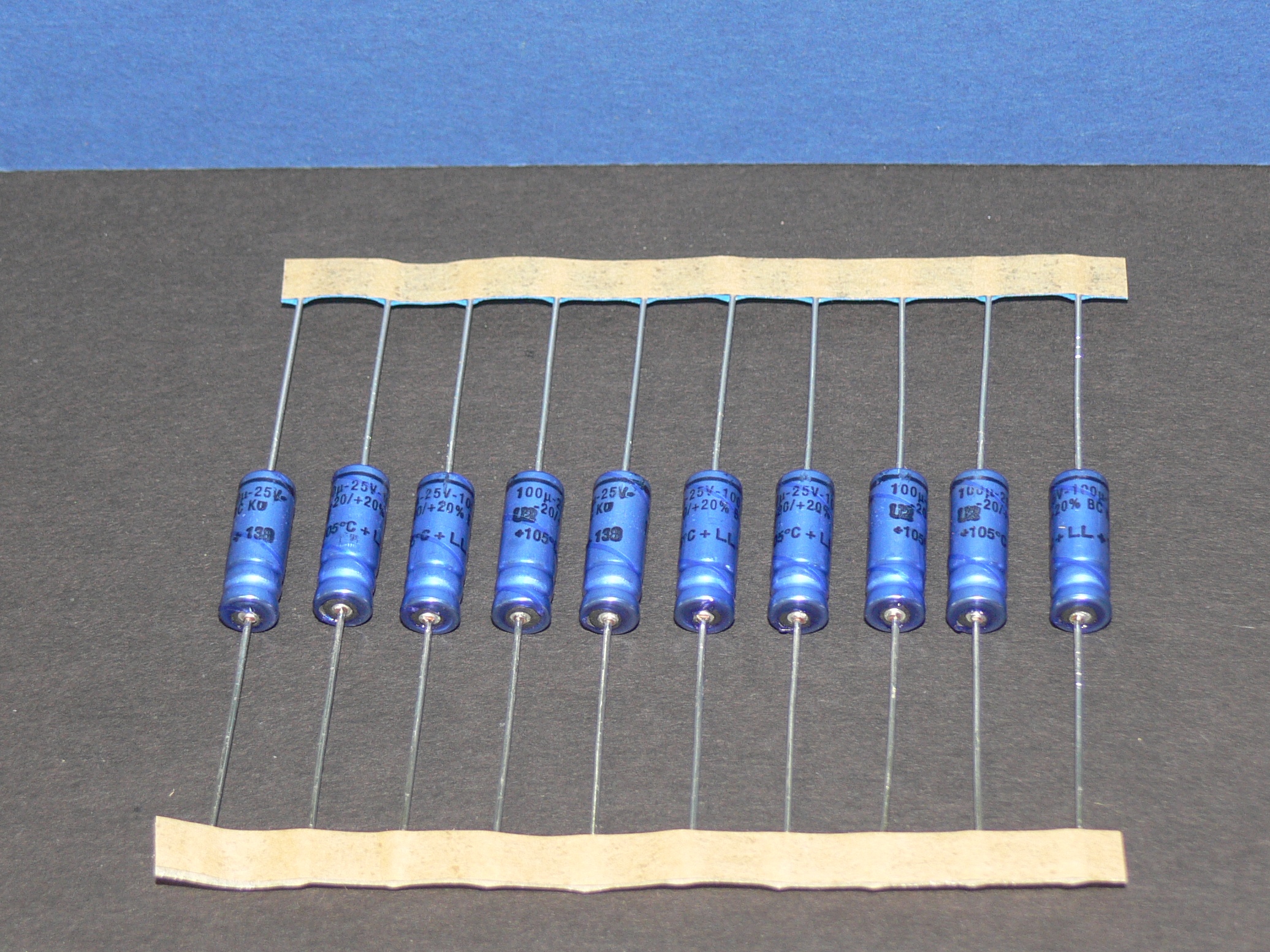 Vishay BC Kondensator axial Elko 100uF 25V 105°C 6,5 x 18,5mm Lot mit 10 Stk